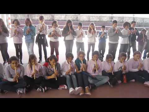 Os alumnos de 5º e 6º inventaron nova letra para a "Saia de Carolina". Ensaiaron un pouquiño coas frautas, pandeiretas e pandeiro e mirade o resultado...